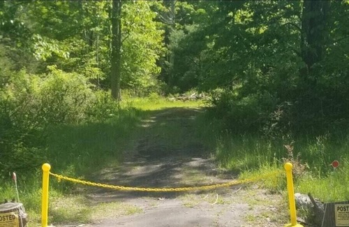 DIRECTIONS TO CAMPSITE: FOLLOW ONLY FOR GPS PURPOSES to the directions for the closest address you will be given to the campsite when you make the reservation. (Camp sites in the woods to not have addresses) DO NOT GO TO THIS HOUSE !!! Drive to the next driveway up the road on left side with the YELLOW CHAIN going across. (Refer to Picture in Photos section) Remove chain and park your car in the designated area and Look to your left for the green arrow and follow the path with the red reflectors and sign to Tent site. It is not recommended you go after dark unless you have experience and light sources and good at navigating in the dark in the woods. There is no one to guide you to the campsite. You will be on your own. We have no responsibility if you cannot locate your campsite or call after dark for directions.