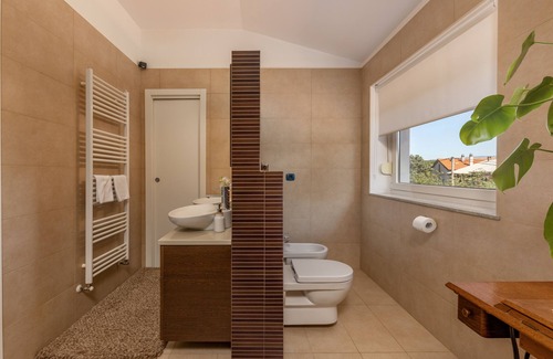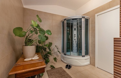 Terra Magica triple room is located in a family villa surrounded by landscaped gardens and fruit trees. This deluxe triple room has a balcony with a beautiful view of the Kvarner Bay and sunsets, then extremely comfortable bathroom with a hydromassage shower located directly opposite the room. Great place to relax in the silence of nature, and yet close to the city. Perfect for guests who want security and isolation, and yet be close to all kinds of attractions in our area.