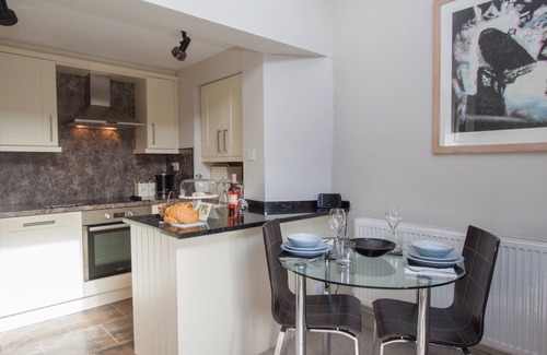 Stylish modern kitchen off the lounge which is very well equipped and beautifully presented with integrated dishwasher, microwave, fridge/freezer and electric oven/hob.