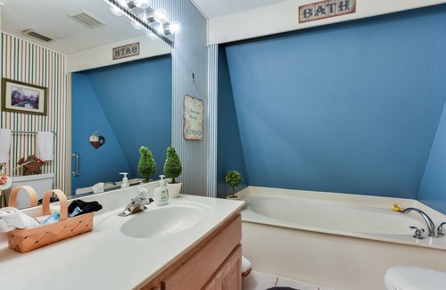 The Texas Barn is a corporate two bedroom, 1700 square foot separate guest home located on a private, gated 3 acre estate in the heart of the Medical Center. A large soaking tub and shower are features of the bathrooms. The grounds also include a main home, guest cottage and separate garage. Use of the private pool, and picnic area is included. Two Golden Retrievers, one Goldendoodle, one Rotweiler and a cat roam around the property and may entertain you! You are on your own once you pet them!