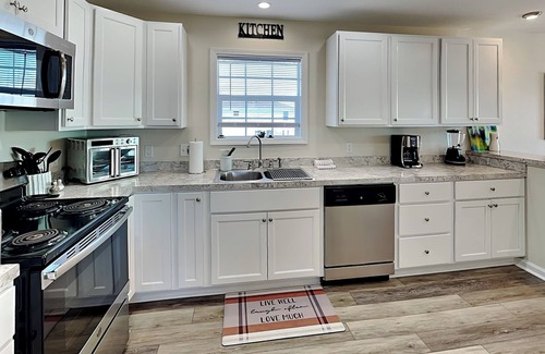 Outdoor living at Tiki Time is second to none. Enjoy morning coffee or evening cocktails on the large front porch, soak in the spectacular water views from the balcony, or unwind on the ground-level patio. With plenty of outdoor spaces to relax, you’ll have your pick of spots to enjoy the fresh Gulf air. Plus, the pet-friendly atmosphere means your furry friends are always welcome to join the fun!