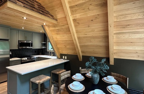Our newly renovated chalet is the perfect destination for a relaxing time away from home. The house is tastefully decorated and designed with a combination of mid-century modern & a cozy cabin feel. We want this space to feel like a sanctuary for you.
