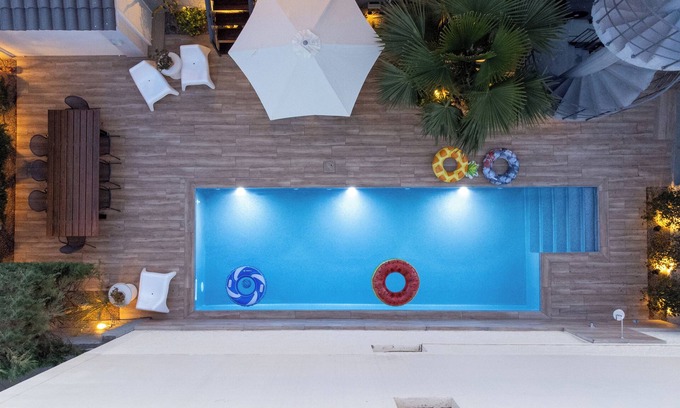 Thalias Quarters is a luxury 5-star ground floor villa in which guests can enjoy the rich private garden of the house with the pool, the sunbathing area with comfortable sun loungers and the 8-seater solid wood table, as well as the hammam on the ground floor.