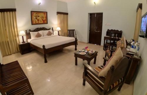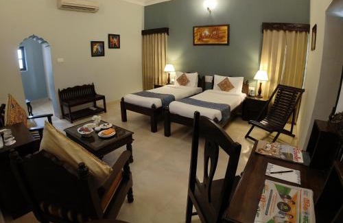 Located in Dechu, 27 miles from Khichan Bird Sanctuary, Thar Oasis Resort and Camp has accommodations with an outdoor swimming pool, free private parking, a garden and a restaurant. With free WiFi, this 4-star hotel offers a 24-hour front desk. Guests can have a drink at the bar. At the hotel, rooms include a desk. Featuring a private bathroom with a shower and free toiletries, certain accommodations at Thar Oasis Resort and Camp also feature a balcony. At the accommodation, every room comes with a seating area. The breakfast offers buffet, à la carte or continental options. Thar Oasis Resort and Camp has a playground. You can play table tennis at the hotel, and car rental is available. Jodhpur Airport is 75 miles from the property.