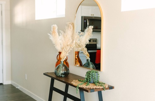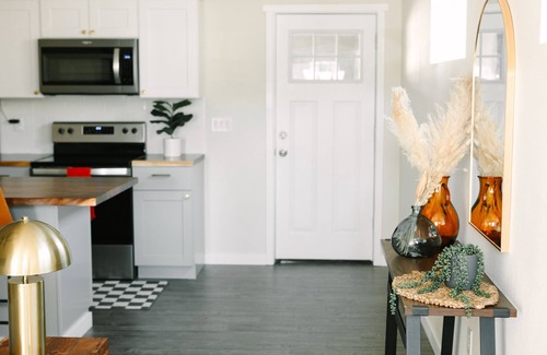 Welcome to your stylish 1-bedroom, 1-bath, comfortably decorated, two-story home. Conveniently located just 1 minute from Highway 395, it's an ideal stop for travelers. Everything you need is within easy reach! You'll enjoy a fully equipped kitchen with brand new appliances to meet all your cooking needs. Your traveling pups will be thrilled to play in the grassy fenced-in backyard while you relax and watch a movie.