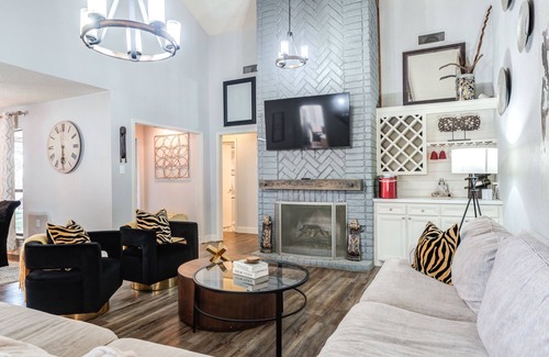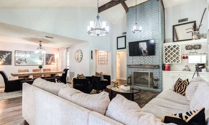 Welcome to THE 806 – your ultimate retreat! This cozy 4BR haven offers 2.5 baths and 8 beds – PERFECT FOR ACCOMMODATING FAMILIES! Just 15 minutes from Texas Tech, it’s the ideal spot for campus visits, game days, or a sweet getaway. Each bedroom comes fully equipped with a smart TV, and the living room features a gas fireplace, perfect for cozy evenings.