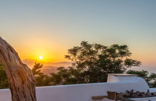 A traditional stone village house in a small sleepy village in Crete, renovated with the personal touch of the owner, a local architect. It offers fabulous views over the sea. Enjoy a perfect sunset every afternoon! You can also book the adjacent Pomegranate house that can accommodate a further 5 people. Both houses are completely independent. The fireplace can be used in combination with the AC during the winter. Note that there is no washing machine in the house, instead we offer clothes washing service for free.