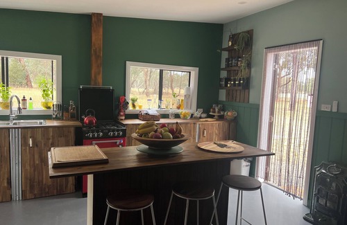 Experience 5 star Off Grid Living.. Gas BBQ and fridge (Fire pits available with BBQ plate). Amazing views, arrive to home cooked bread and Soup on Request