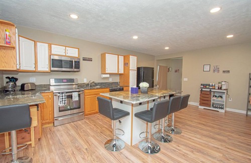 Across the street from the historic Dairy Queen and the internet famous KOFFE KUP. 4 Minute walk to TJ chumps and downtown Miamisburg is this barbershop turned into a luxury apartment with full power reclining leather sectional, 75 in Roku TV, large granite slab dining, and an air hockey table. The river trail and Bike path are few minutes of walking so is the river front park. Why not rent some bikes from Whitman and go for a ride along the river or visit the famous "mound" 1 mile away.