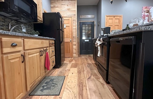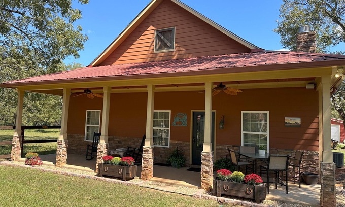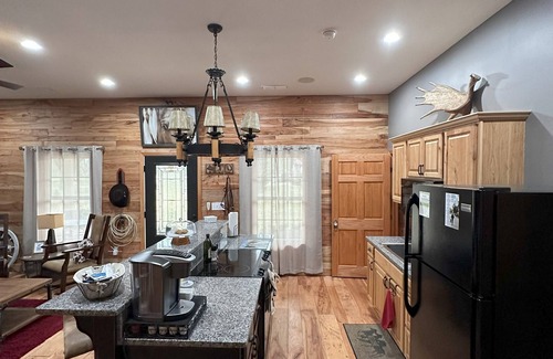 Escape to a charming barn apartment, where rustic Western charm meets modern comfort. Relax in the spacious living room, perfect for unwinding after a day of travel. The fully equipped kitchen with all new appliances and a large breakfast bar makes meal prep a breeze. The master bedroom offers a queen-size bed, walk-in closet, and private bathroom, with an additional queen bed available in the living room for extra guests. Traveling with little ones? A crib, pack-n-play, or air mattress can be provided.