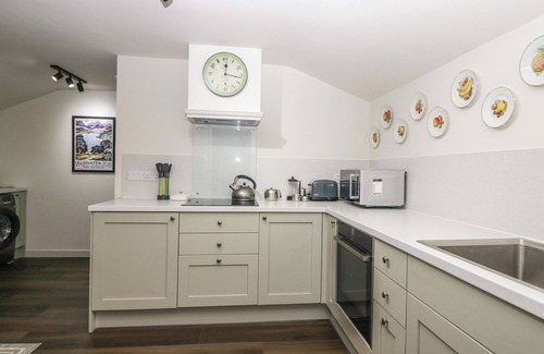The Barn consists of a reverse-level property with open-plan, first-floor living space with a kitchen with electric oven, induction hob, microwave, fridge/freezer, washing machine, tumble dryer, dishwasher, a dining space for four, and a sitting area with Smart TV. The bedrooms are ground-floor and include a king-size and twin, serviced by a ground-floor bathroom. Outside there is a non-enclosed front patio with furniture, plus off-road parking for two cars. Within 0.4 miles or less you will find a shop, river, and pub, and within 2.4 miles, a lake, and please note this is a smoke-free and pet-free property. WiFi, fuel, power, bed linen, and towels included in the rent. Highchair and travel cot available. Make a memorable getaway to Cumbria with The Barn. Please Note: The owner can only accommodate a Monday and Friday Check In, with Monday or Friday Check Out dates