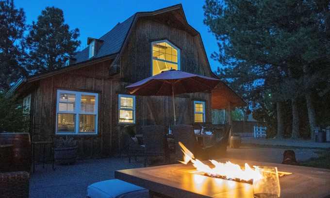 The Barn is named for what were once horse stalls and hay lofts. It is a classy restored barn that has been transformed into a beautiful guest cottage. The Barn provides you with all you need to stay for the weekend, a week or even a month. It comfortably accommodates 4-5 guests. The downstairs incorporates a comfortable living room and dining banquette complete with a farmhouse bench perfect for relaxing, reading, watching tv and dining. The kitchen is fully stocked and ready to use with stainless appliances, gas range, apron front sink, rustic concrete countertops, open shelving and lastly great coffee! The master bedroom includes a king bed with cozy linens and goose-down filled duvets. The loft is its own private retreat, complete with queen bed dressed in top-of-line linens. The main bath has a rustic tumbled stone walk-in shower and spa quality towels. One of our favorite parts of the Barn is the large private patio where you can BBQ on your own gas grill and converse with family and friends while sitting around the spacious outdoor table and fire pit. Bikes are available to rent downtown and we highly recommend you use to visit the local wineries and enjoy the picturesque country side. Even with the country setting, you are just 3 miles away from downtown.