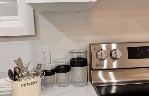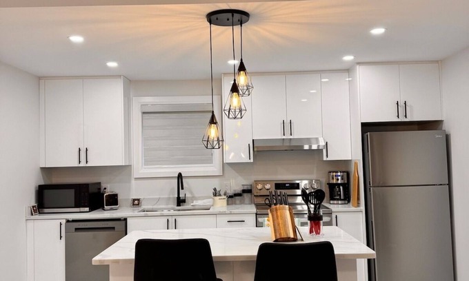 Welcome to the cozy and modern basement unit of the Glorious Glidden Stunner! This well-designed space offers comfort, privacy, and everything you need for a relaxed stay. With its own private entrance, the unit features 2 spacious bedrooms, a full bathroom, a fully equipped kitchen, and a stylish living area with smart TV and Wi-Fi.