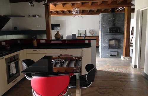 - The kitchen equipped with fridge, freezer, 2 induction hob, 2 gas hobs, oven, microwave, dishwasher, coffee maker, electric kettle, toaster, raclette, fondue, pans, stoves and all the necessary utensils to prepare good meals.