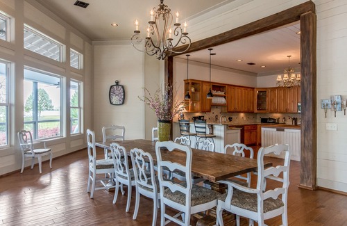 Welcome to Bayou Lodge and Guesthouse on beautiful Lake Martin. Call or text the manager for reservation or info-/questions at 334-321-1706. We are excited to offer this quiet, beautiful lake home to a select group of guests. In Alabama, with Lake Martins' new Treasure Lake status, you even have more reasons to 'Indulge and enjoy this Perfect Waterfront Retreat' -- Bayou is designed and furnished for a large gathering in mind : Perfect for family reunions, family vacations, family wedding gatherings, Auburn ballgames, Church groups, gathering with friends or just about any other reason you want to gather with a large group in the fabulous setting. The 10,000 sf main home has 8 large bedrooms(2 master suites) with 8 private baths, each waterfront with a spectacular view of Lake Martin. A 3 BR 1 BA guesthouse adjoins the main house. The home sits literally on the water. A huge great room (approx. 1000 sf) features classic plank walls and hand scraped hardwood floors and offers panoramic views of the Lake.