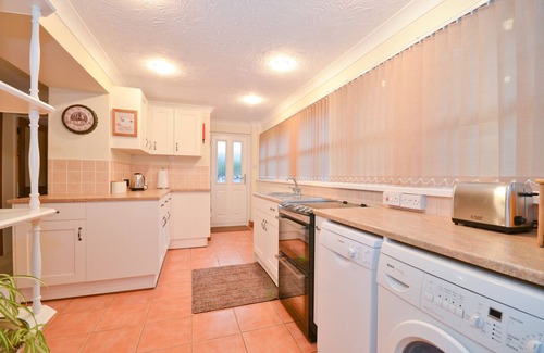 The open plan kitchen/diner provides a well equipped kitchen including a washing machine, dish washer and oven and dining table and chairs.