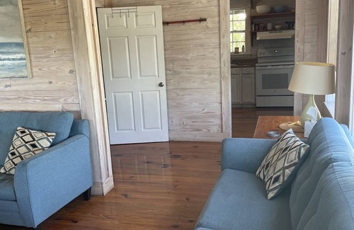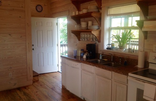 The Beach House is a home like no other. Built by Curt in 2014, this cottage is nestled within the palms of a large, serene corner lot on the beautiful Forgotten Coast. The quiet area around the house allows for a relaxing trip with uncrowded beaches. Light-washed hardwood runs floor to ceiling throughout the home and the large windows provide spectacular views of the surrounding environment. Our private access trail across the street, outdoor shower, and water hose make beach trips a breeze. This coastal area is pet-friendly and offers many enjoyable possibilities including peaceful strolls on the beautiful beaches, swimming, sun bathing, boating, snorkeling, fishing, crabbing, scalloping and surfing. Beach equipment including golf carts, canoes, kayaks, and extra chairs can be rented nearby.