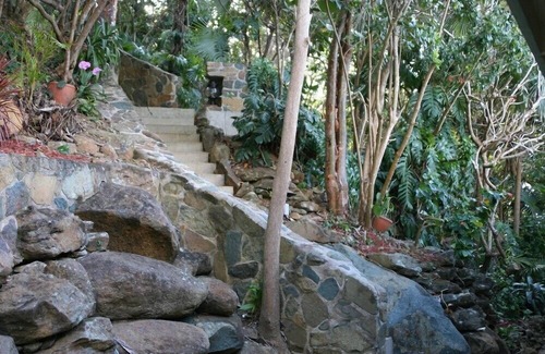 The beach house is a unique property on St. Thomas. If you're looking for privacy, the beach house is the place for you. This magnificent property is located 40 feet above sea level on three acres with 700 feet of shoreline, where a wooden stairway leads you to a small, secluded beach.