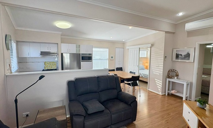 Located within the family-friendly Geographe Bay Holiday Park, guests have access to fantastic shared facilities including a seasonal outdoor swimming pool and kids’ splash pool, children’s playgrounds, a games room, and tennis courts. When it’s time to eat out or enjoy a drink, you're just a short walk from the popular Tonic by the Bay bar and restaurant, perfect for sunset dining by the beach.