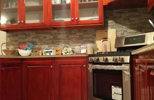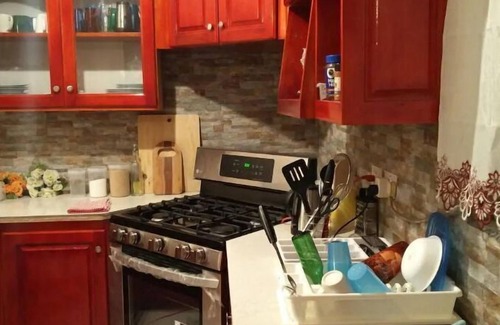 Our place is a fenced and gated 2 bedroom house. Upon entrance of the house one would be greeted with the unique design of rustic but yet modern open concept of the living room and kitchen area. From ceiling to floor each complimenting the other.