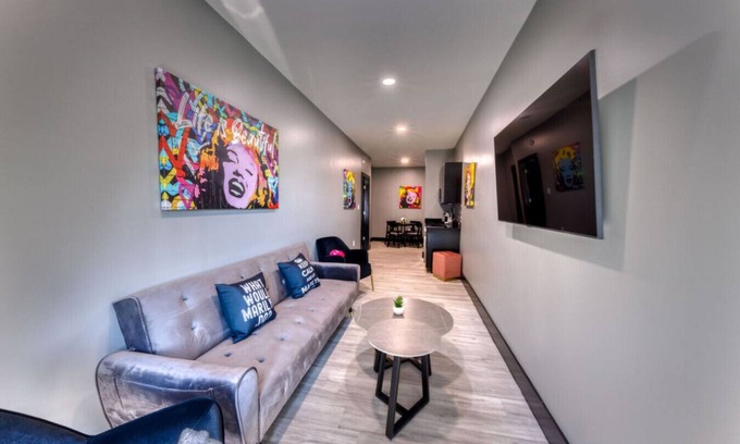 Welcome to the epitome of classic Hollywood glamour, the Blonde Bombshell Suite, where the allure of Marilyn Monroe and the charm of a bygone era come together to create an unforgettable stay.