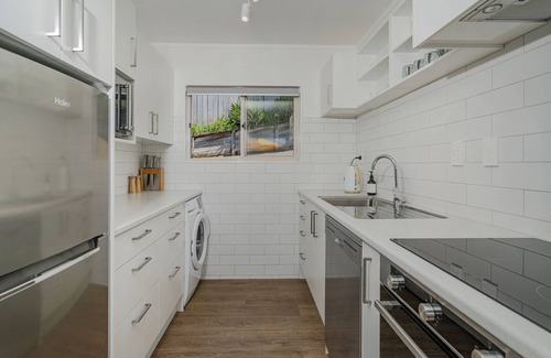 Inside, you'll find a modern, well-equipped kitchen where you can easily whip up delicious Kiwi dishes and a stylishly furnished interior. The modern bathroom ensures comfort and convenience during your stay.
