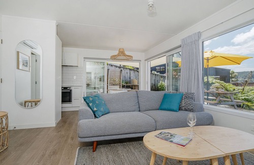 Discover The Blockhouse, a well-presented two-bedroom Whangamatā retreat, offering a modern and stylish escape for a small family or a couple.