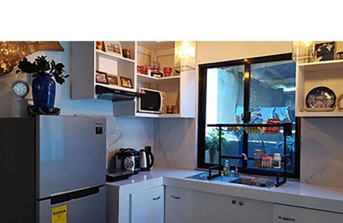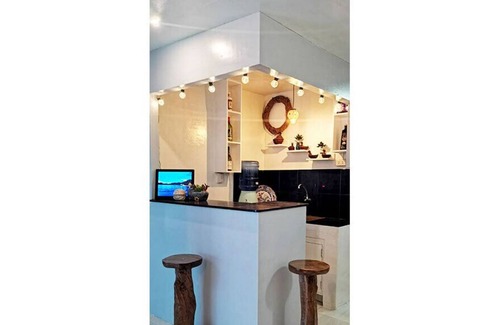 Befitting a traditional Filipino home, the interior is clean, modern, and homey. Bask in natural light of this open concept with a well appointed dining area that is joined with a full bar. The stylish kitchen offers all the amenities for a home cooked meal. The two air conditioned bedrooms provide a sleep and privacy environment with designer linens, comfortable beds and plenty of closet space.
