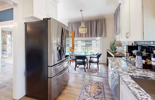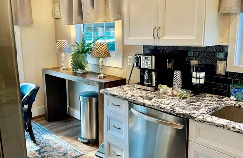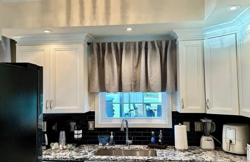 This stunning 3-bedroom, 2-bathroom residence built in 1933 offers a sophisticated living space. Enjoy breathtaking views of the 15-acre private lake on the outdoor pavilion, electric fireplaces, plush seating, backup generator. The fully stocked kitchen boasts modern stainless-steel appliances & quartz countertops. Bathrooms are thoughtfully designed with assistance railings and seating in the showers. Our highly rated Purple mattresses and adjustable bed frames provide phenomenal sleep.