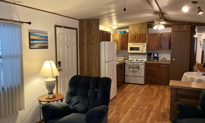 Come relax & enjoy the breeze & beautiful sunsets with our comfortable 2-bedroom Blue Palm home! We offer a lot of privacy, peace, & quiet for Winter Texans or small groups who want to bask in the warmth of our seasons! We have mature shade of our trees, a porch swing, refreshing air-conditioning, and close access to the community swimming pool! Located in La Mirada Country Estates, it offers quick access to major highways & stores while maintaining a quiet and restful retreat from city life.