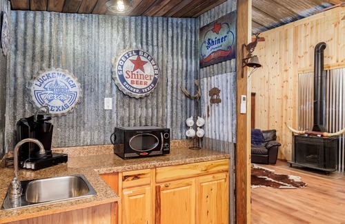 Prepare easy meals with the provided microwave, coffee maker, and basic plastic utensils—just right for enjoying around the firepit under the open Texas sky. Linens and towels are provided, along with an essential starter kit including toilet paper, body soap, and shampoo. For those who love the idea of camping but appreciate the coziness of a plush bed, Boar's Lodge is your ideal destination.