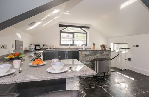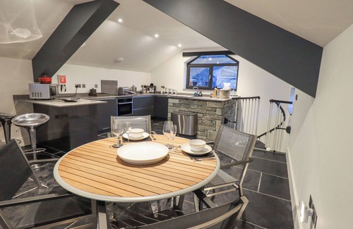 The Boat House at Louper Weir is an enchanting boathouse conversion resting on the outskirts of Bowness-on-Windermere in the Lake District. There is one king-size-bedroom within the studio layout and a ground-floor layout, making the property suitable to sleep up to two people. On the first-floor is an open-plan layout holding the bedroom area as well as a kitchen, dining area and a siting area with a balcony. Outside is your own private hot tub as well as a designated parking space for one car. The Boat House at Louper Weir is a dazzling dwelling, ideal for your romantic retreat in the Lake District.