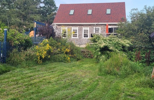 The Boathouse is nestled on Green's Point Road, just a short three-minute walk from the Green's Point Lighthouse and Museum in L'Etete. Once a traditional boathouse, it has been carefully transformed into a cozy and inviting retreat. Sheltered from the wind yet offering panoramic views of the wild, untamed landscapes, we hope our guests find peace and comfort in this unique location. From the deck, enjoy the calming sounds of seals, the rhythmic crash of the waves, and the haunting call of the foghorn as the mist rolls in. Bring your binoculars to spot local wildlife, including migrating birds, whales, and seals. Conveniently located near amenities, shops, golf courses, whale watching, fishing, boating, and a variety of other activities.