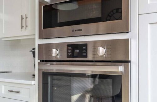 - Fridge/freezer, stove, oven, toaster, microwave, and a dishwasher.