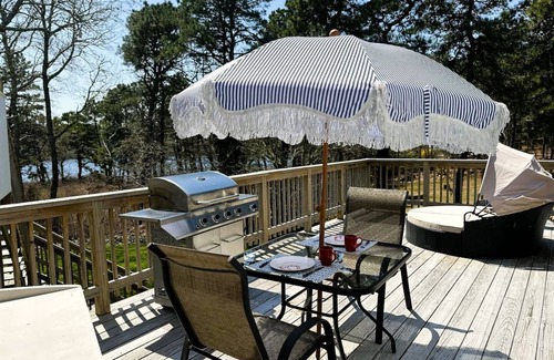 The Breeze is a luxurious, romantic cottage by a serene freshwater pond, surrounded by vibrant gardens. Perfect for a peaceful getaway, enjoy kayaking, canoeing, and relaxing on the dock, or explore nearby trails and the Cape Cod Rail Trail with provided bikes. Unwind with evenings by the fire pit, refreshing outdoor showers, and a plush queen bed for ultimate comfort. This private oasis offers tranquility, natural beauty, and 5-star attention to detail for your perfect escape.