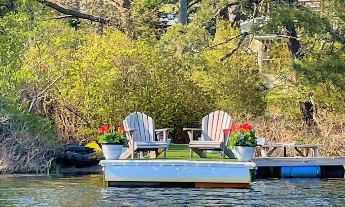Dock on the pond, gardens, your own laundry, electric bikes, beach chairs, and canoe