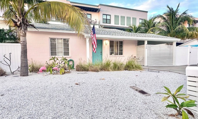 Welcome to The Briny Bubble — a charming, pink two-bedroom cottage nestled in the heart of Dunedin. This delightful retreat is designed for comfort and relaxation, with a spacious king bedroom and a cozy queen bedroom, perfect for unwinding after a day of adventure. The modern bathroom includes a walk-in shower, and the cottage comes fully equipped with amenities like AC, WiFi, a washing machine, and a fully stocked kitchen.