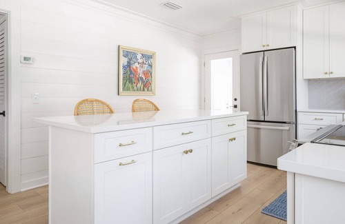 The Bungalows at St Simons Park • Unit #638: Discover island-inspired style and comfort in this freshly updated two-bedroom, two-bath condo, just a 5–7 minute stroll from Pier Village and sun-kissed beaches. Nestled on a serene, private street, Unit #638 is one of four chic bungalows sharing a tranquil community pool (Seasonal Pool Closure starting October 31st and will reopen in April) and lush common grounds. Upscale coastal décor, high-end furnishings, and playful wallpaper set the tone for a true island getaway.