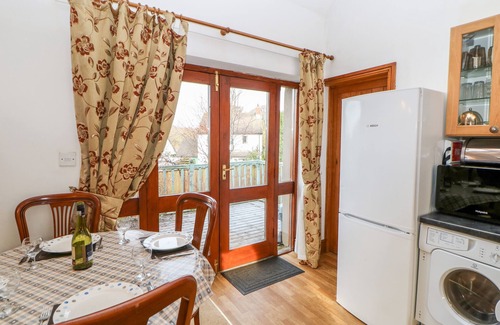 Amenities: Electric storage heaters with woodburner in sitting area. Electric oven & hob, microwave, fridge/freezer, washing machine, dishwasher, TV, DVD, radio, stereo/CD, WiFi. Fuel, power & starter pack for woodburner inc. in rent, additional logs available (honesty box). Bed linen & towels inc. in rent. Cot & highchair available. Enclosed garden. Shared use (with seven other cottages on site) of summerhouse & hot tub all year round at £40 per week or £20 per short break, payable direct to owner on arrival (use is by direct arrangement with owner). Decked balcony area with furniture & BBQ. Ample off road parking. One well-behaved dog welcome at £10 per week. Sorry, no smoking. Shop & pub 2 miles. Note: There is a railway line approx 250 metres from the cottage some noise is audible when trains pass. Note: The Byre is accessed via 2 flights of approx 9 steps