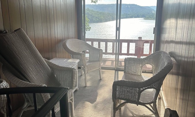 This 5-bedroom cabin is perfect for your escape to Lake Tenkiller. Nestled in a serene setting, this charming property offers a cozy retreat for guests. The cabin features a variety of comfortable sleeping arrangements, including a king bed, queen bed, and three full beds. With amenities like a washing machine, AC, and heating, you'll have everything you need for a delightful stay. Whether you're lounging in one of the two living areas overlooking the beautiful lake or exploring the lake that is steps away, this cabin provides a peaceful getaway. We'll be available to answer any questions while you stay at our family cabin.