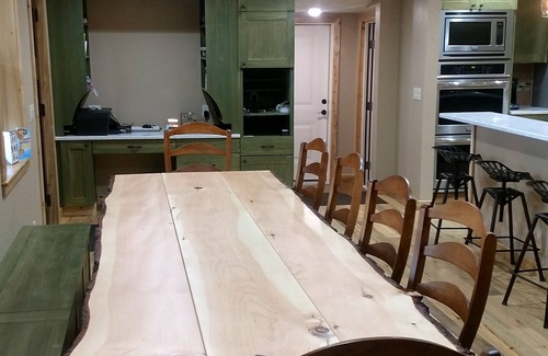 Custom wood floors throughout, gourmet kitchen with all new appliances and custom cabinets made by local craftsman. Unique stairs made from Hemlock and Cedar trees from the property. Custom made dining table made from local area White Pine that can seat up to 14 people.