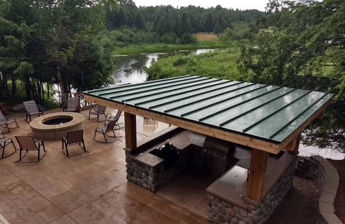 Sit on the 350 square feet balcony overlooking the Thunder Bay River. Large outdoor patio with fire pit and deck with stairs to access the river. Outdoor kitchen with gas grill, smoker and sink. Pool table in the game room and a loft for enjoying the view on those cooler days.