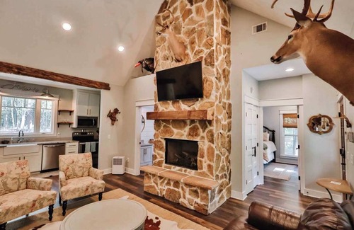 The Camellia Cottage offers a family-friendly environment with space for children to relax and play. The rustic hunting and farmhouse-themed decor create a cozy atmosphere. Please note that no parties or events are permitted, and for the comfort of all guests, no pets and no smoking are allowed on the property.