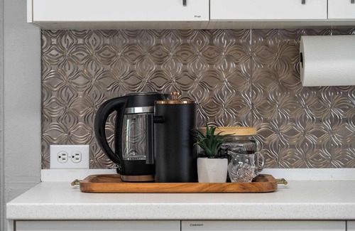 - Stove, oven, microwave, coffee & tea station