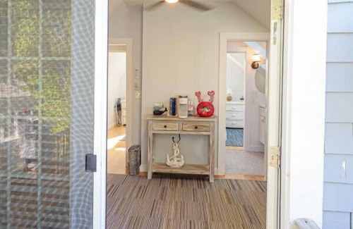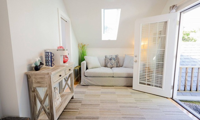 Enjoy this classic cape cod oasis directly across the street from Allan Harbor. This space has a private entrance and deck with a table for 2, where you can sit, relax and enjoy the fresh air off the comfort of your room. This space has a queen size bed, tv, A.C. unit and heat. Your unit is equipped with a mini fridge, microwave and coffee Keurig machine (with k-cups provided). There is your own living room off of the bedroom with a pull out couch and another T.V. Lastly, your own private bathroom and shower with towels and linens provided.