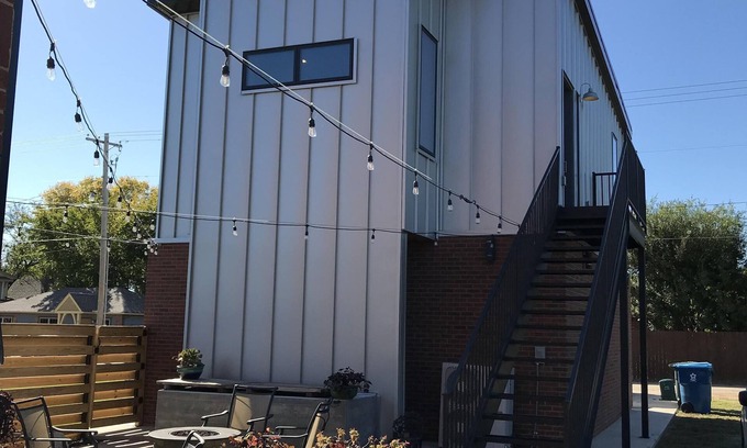 Have an urban experience in quaint historic Downtown Edmond, OK. This upstairs urban townhouse was built in 2017 for this very purpose. Walk to the University of Central Oklahoma, The Patriarch, UCO Jazz Lab and enjoy all the amenities of our walk-able environment. The second story townhouse is new and furnished to provide the guest an urban experience. Guests have the entire townhouse and access to a wonderful courtyard with fire pit. The neighborhood is unique because it is walkable and bikable with many restaurants, bars, and other entertainment options within walking distance.