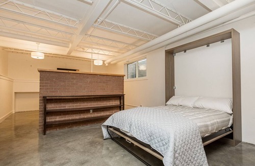 This modern, open-concept basement suite features an industrial design and comfortably sleeps four, with a queen bed and a queen Murphy bed. Perfect for couples or small groups, the space offers a fully equipped kitchen with a fridge, stove, dishwasher, Keurig, toaster oven, microwave, and more. With its cozy and stylish interior, this suite provides the ideal urban retreat just minutes from downtown Calgary.