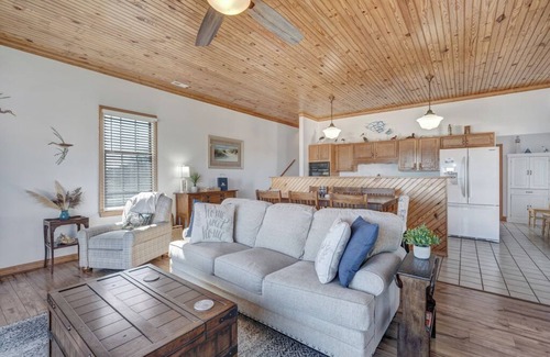You’ll love kicking back in the Living Area with Flat Screen Streaming TV, comfy furnishings, and a wall of windows to the Water. Warm Wood Floors and a Knotty Pine Ceiling create such a welcoming room that you’ll never want to leave - except to slip out to the Channel Front Deck!
