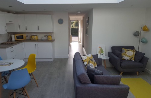 The Coneygree @ Northwick is a modern and light one bedroom apartment located in the quiet residential area of Northwick. With a great sized open plan kitchen/lounge area bathed in light from the large roof lantern for guests to relax, unwind or work in, comfortable double bedroom with plenty of storage for belongings, stylish wet-room and outside decking area to sit and enjoy the sunshine in privacy.