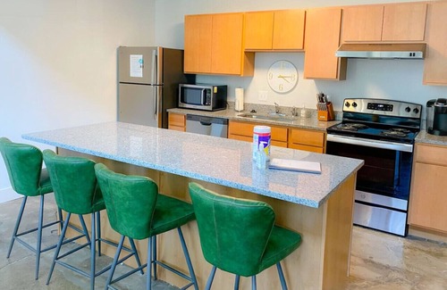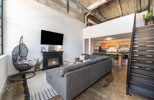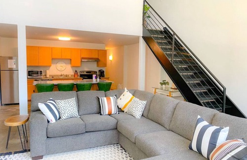 This is a loft and has an industrial feel. There are many things to do nearby. Great place for a stay-vacation.